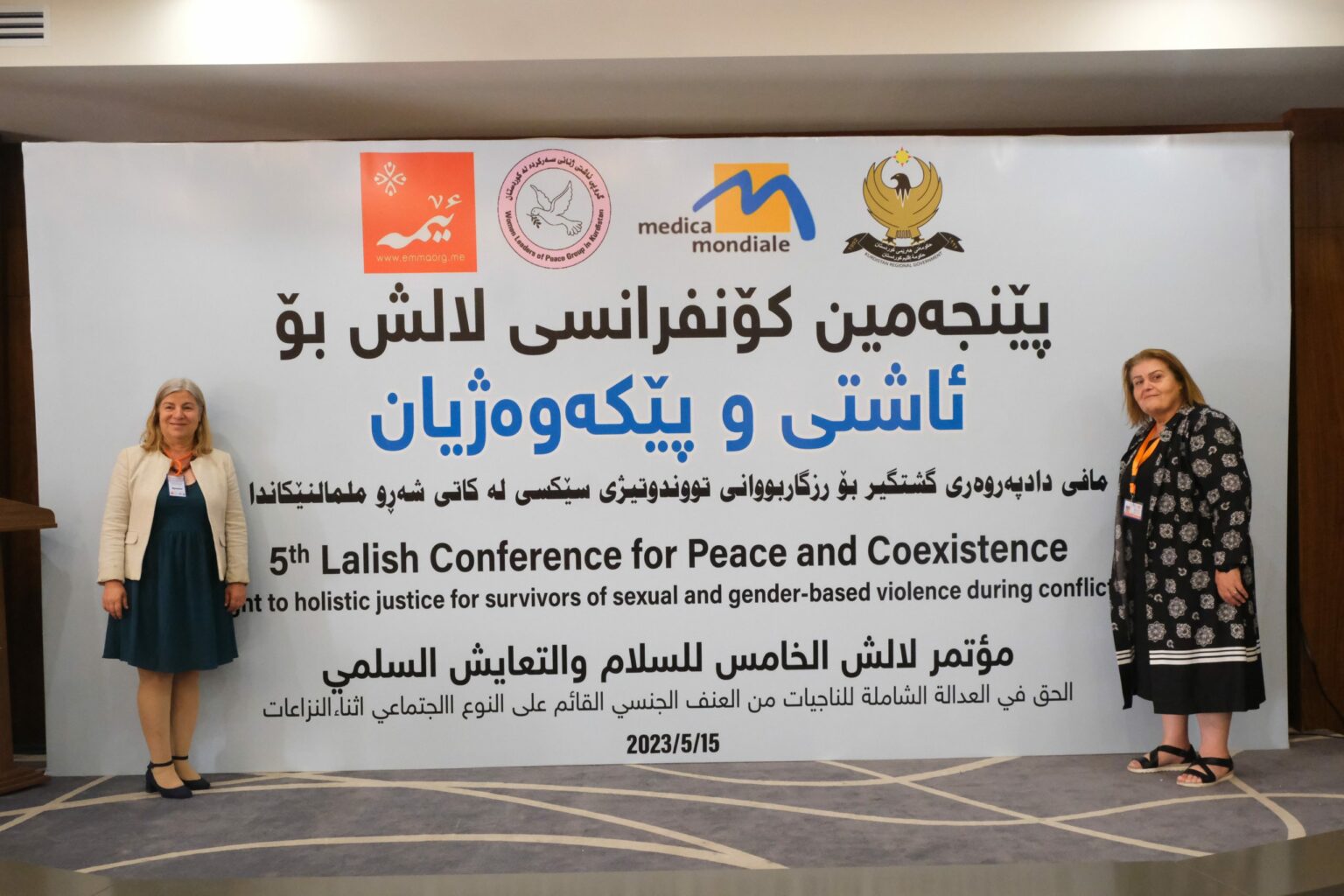 بتاريخ 15 ايار 2023 عقدت منظمة ئيمه للتنمية البشرية وبالتنسيق مع المجلس الاعلى للمراة والتنمية في حكومة اقليم كوردستان وبالتعاون مع منظمة ميديكا مونديال مؤتمر لالش الخامس للسلام والتعايش المشترك في اربيل تحت عنوان ( الحق في العدالة الشاملة للناجيات من العنف الجنسي القائم على النوع الاجتماعي اثناء النزاعات). وحضر المؤتمر العديد من ممثلي حكومة اقليم كوردستان ومنظمات المجتمع المدني المحلية والدولية وشخصيات اكاديمية من بغداد واقليم كوردستان. حيث هدف المؤتمر الى تسليط الضوء على وضع الناجيات من العنف خلال احتلال داعش والتحديات التي يواجهونها وفي نهاية المؤتمر تم العمل على اعداد عدد من التوصيات لتقديمها للجهات ذات العلاقة.